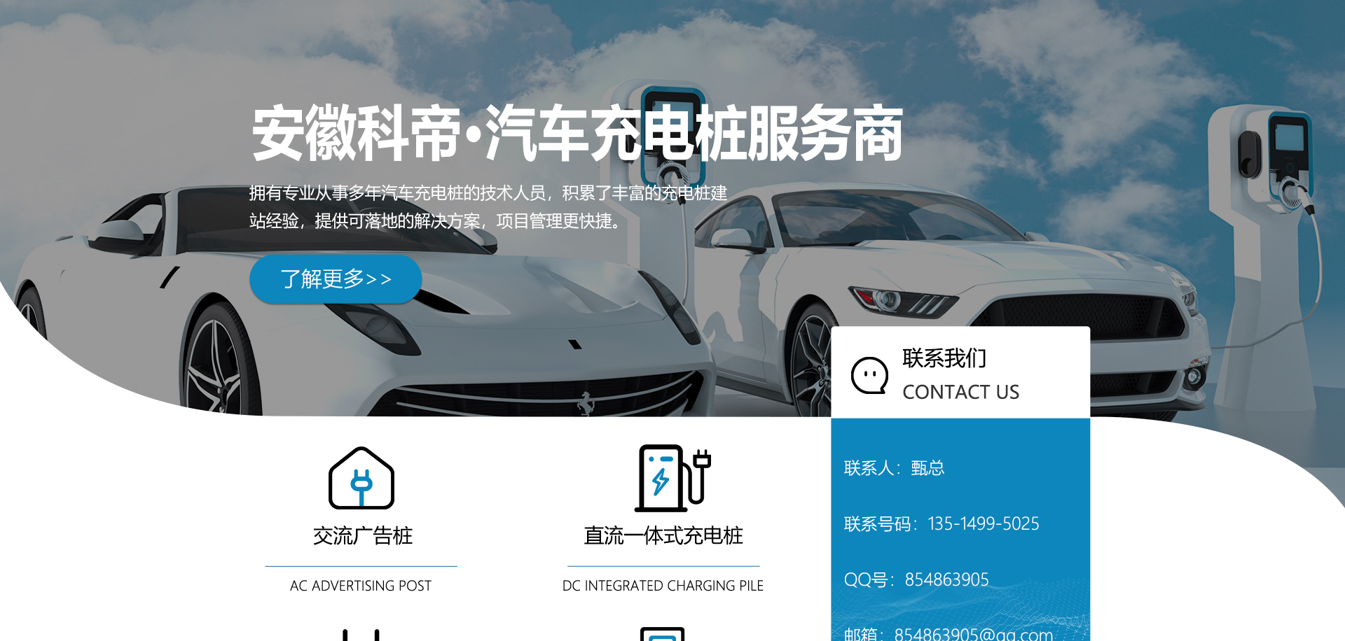 關于我們安徽科帝新能源科技有限公司坐落于安徽省會-合肥,是一家研發、生產智能充電樁設備,汽車充電站后臺監控管理系統和生產高壓開關設備的企業.由專門的研發團隊、管理團隊按照現代化企業制度規范設立的有限責任公司。致力于為能源智能、安全的應用和節能減排提供整體的技術與產品解決方案。科帝集研發、設計、生產、銷售以及服務于一體,在電動汽車充電方案,充電設施建設和城市配電方面擁有廣泛的技術研究及經驗積累,為客戶提供安全、智能的充電設備及充電運營站建設一體化解決方案。并堅持以人為本、質量為先、顧客至上、不斷創新”的企業理念,為能源行業的發展、節能減排做出重大的貢獻。公司擁有豐富的產品種類,目前科帝已研發生產了三十多種產品,充電設備有直流一體式充電樁、直流分體式充電樁、直流廣告樁、交流廣告樁、廣告一體樁、壁掛交直流樁;等多種充電設備;每一款產品都是精心打造,力求為客戶提供優越的用戶體驗。展望未來科帝將通過持續的自...